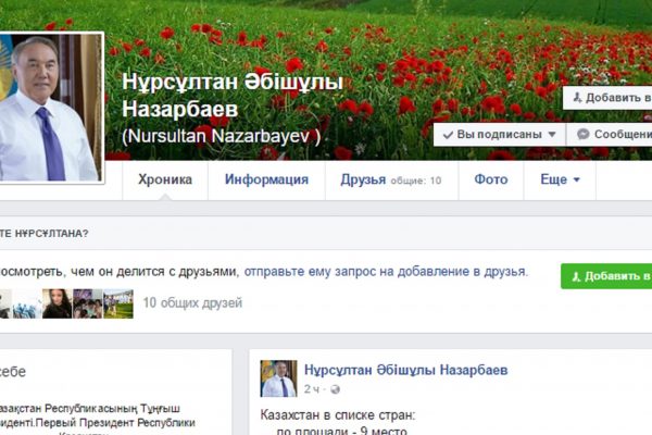 “Қош келдіңіз!”. Нұрсұлтан Назарбаев Фейсбукке тіркеліпті (фото)