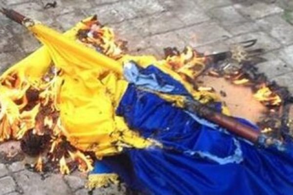Путинге не болған? Украинаның туын өртеп жіберіпті