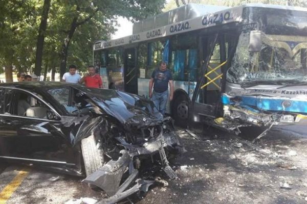 Алматыда Mercedes тізгіндеген жас қыз қарсы жолаққа шығып, автобусқа соқтығысты