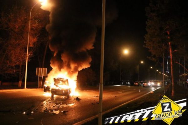 Алматыда соғылған екі көлік өртеніп кетті (фото, видео)