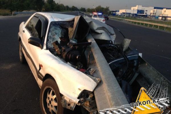 Алматыда рөлде ұйықтап кеткен жүргізуші жол қоршауына қадалды