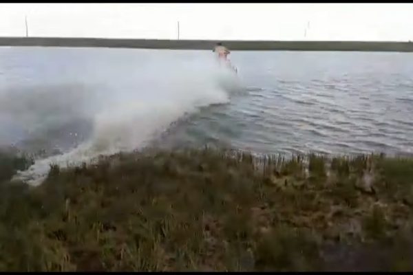 Қар көлігін мінген батыр өзен үстінен өтіп кетті