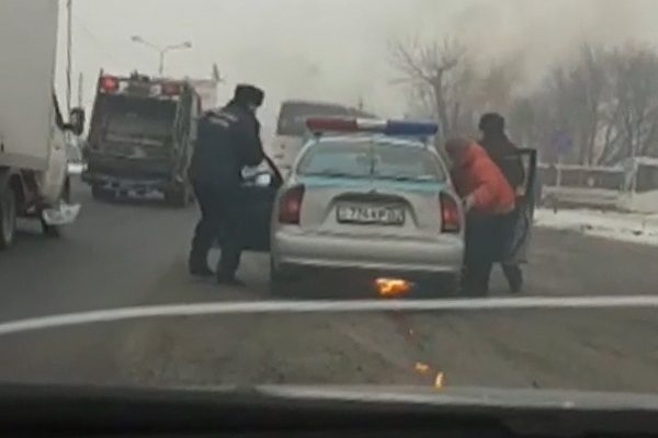 Алматыда полицейлердің көлігі өртеніп кетті