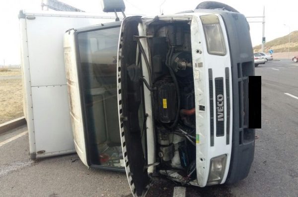 Алматыда жүк көлігі аударылды