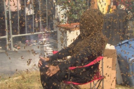 Біртүрлі рекорд: Канада тұрғыны жүз мың араны денесіне қондырып бір сағат отырды (видео)