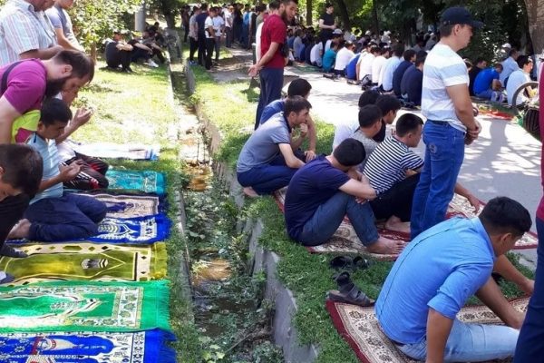 Алматыда мешітке сыймай қалған халық жұма намазын көше бойында оқыды (фото)