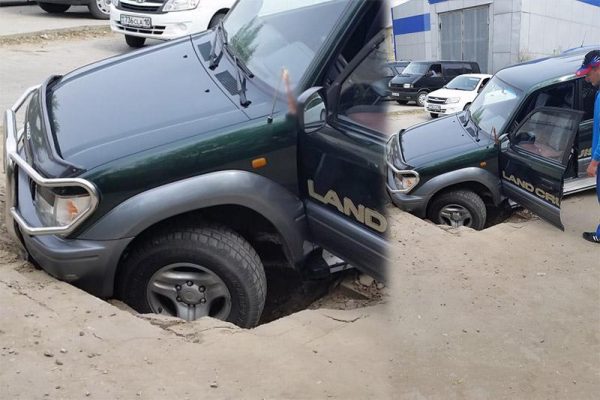 Қостанайда көлік жүріп келе жатқанда асфальт опырылып кетті (фото)