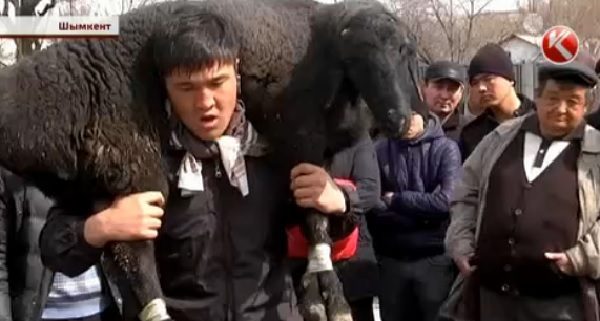 “Түк ауыр емес!”. Шымкенттік жігіт 60 келілік қошқарды мойнына салып 70 рет көтере салды