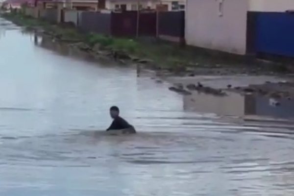 Көше көлге айналды. Атырауда балалар шалшық суға шомылып жүр