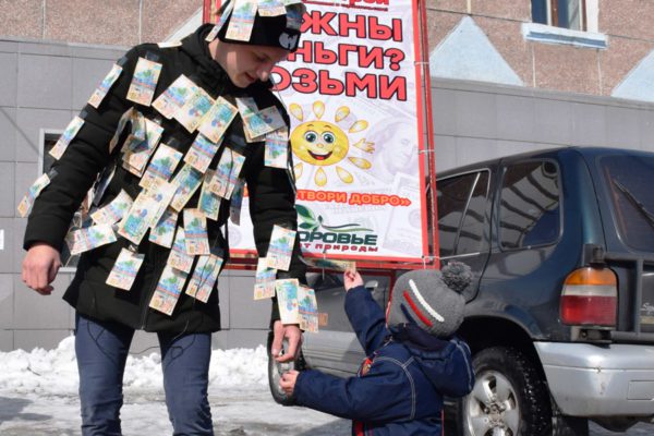 Көшеде ақша таратқан зыряндықтың өзіне біреу ақша тастап кетті (фото)
